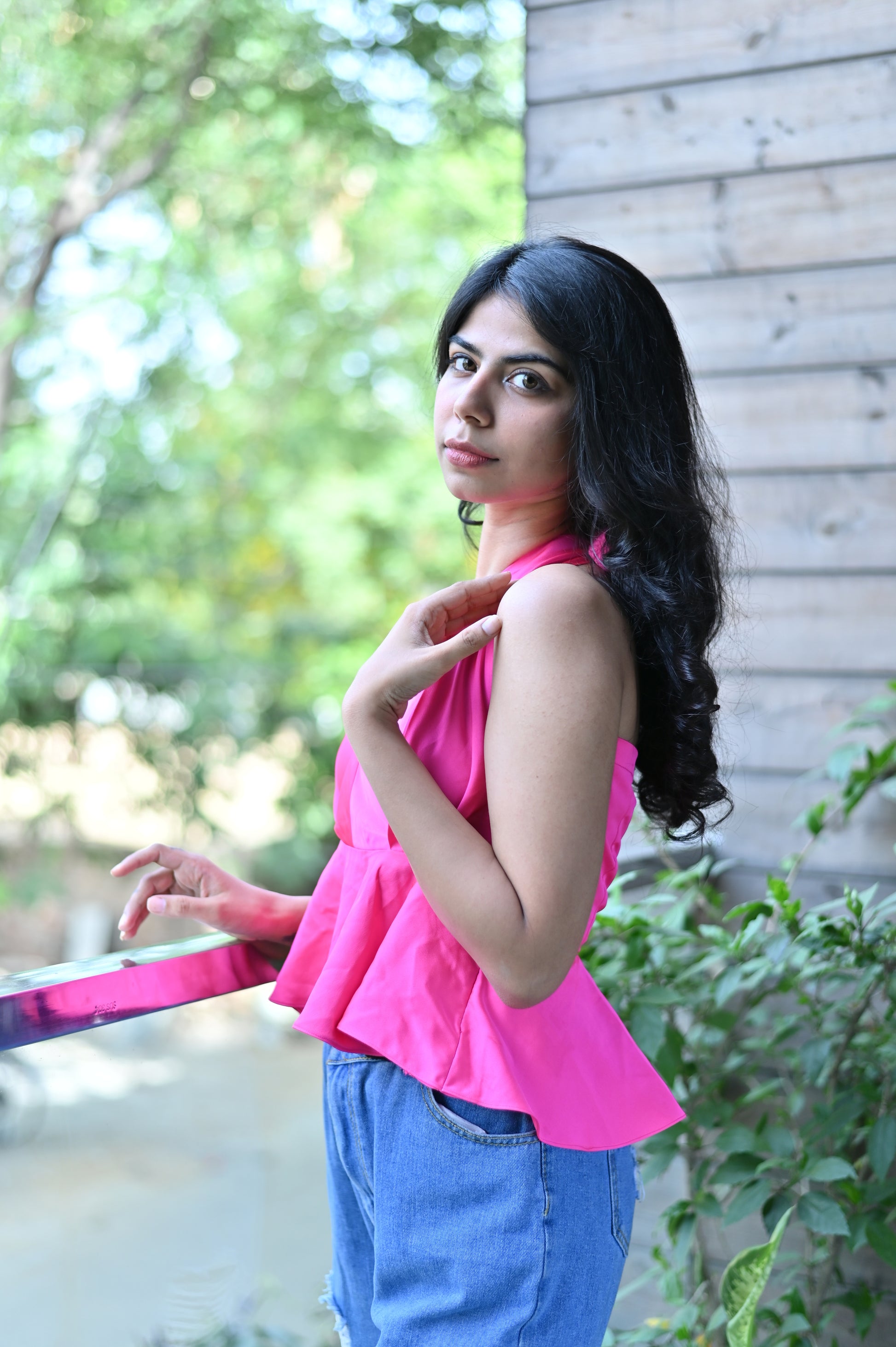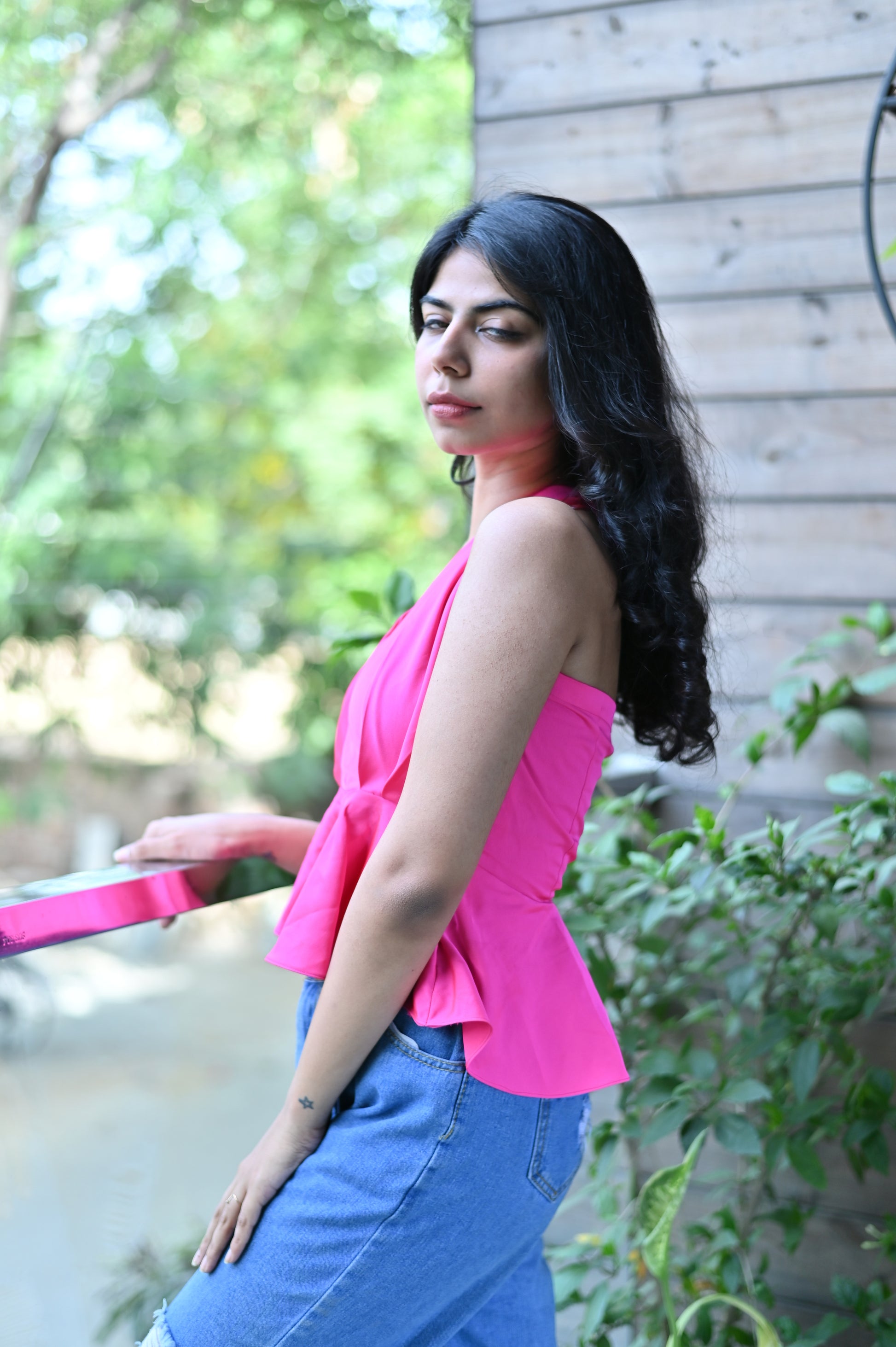 Halter Backless Hot Pink Top in Satin fabric is a body fit top with a V neckline and it’s tyeable at the back .