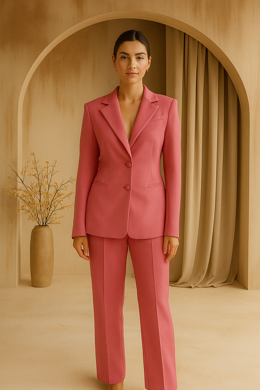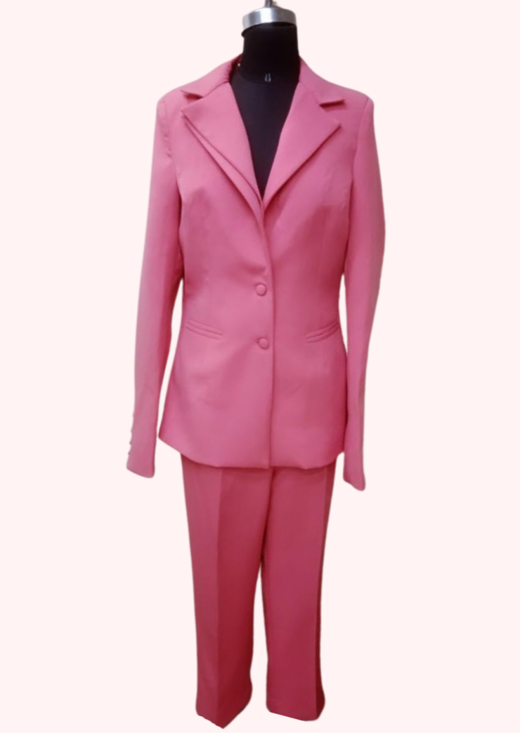 The Pastel Pink Blazer Co-ord Set has collar with full sleeves and front buttons. It comes with formal pants.