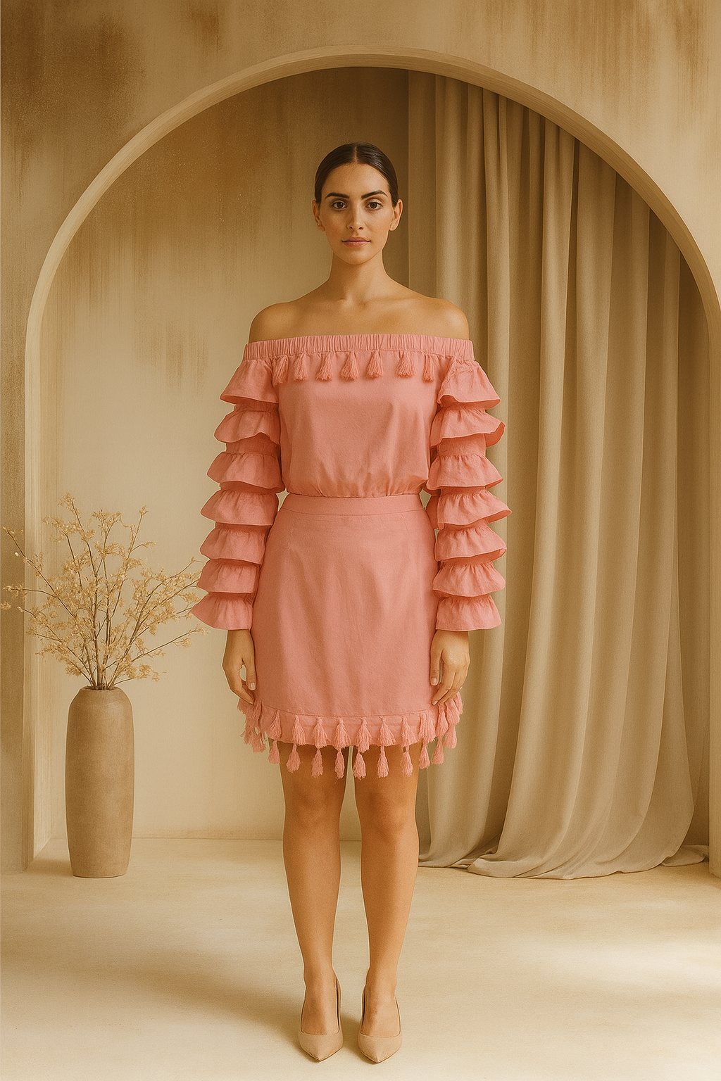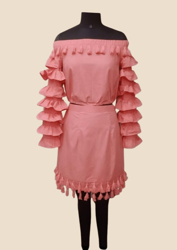 This finely crafted semi fitted top and skirt silhouette with layers all over the sleeves being of the utmost importance.